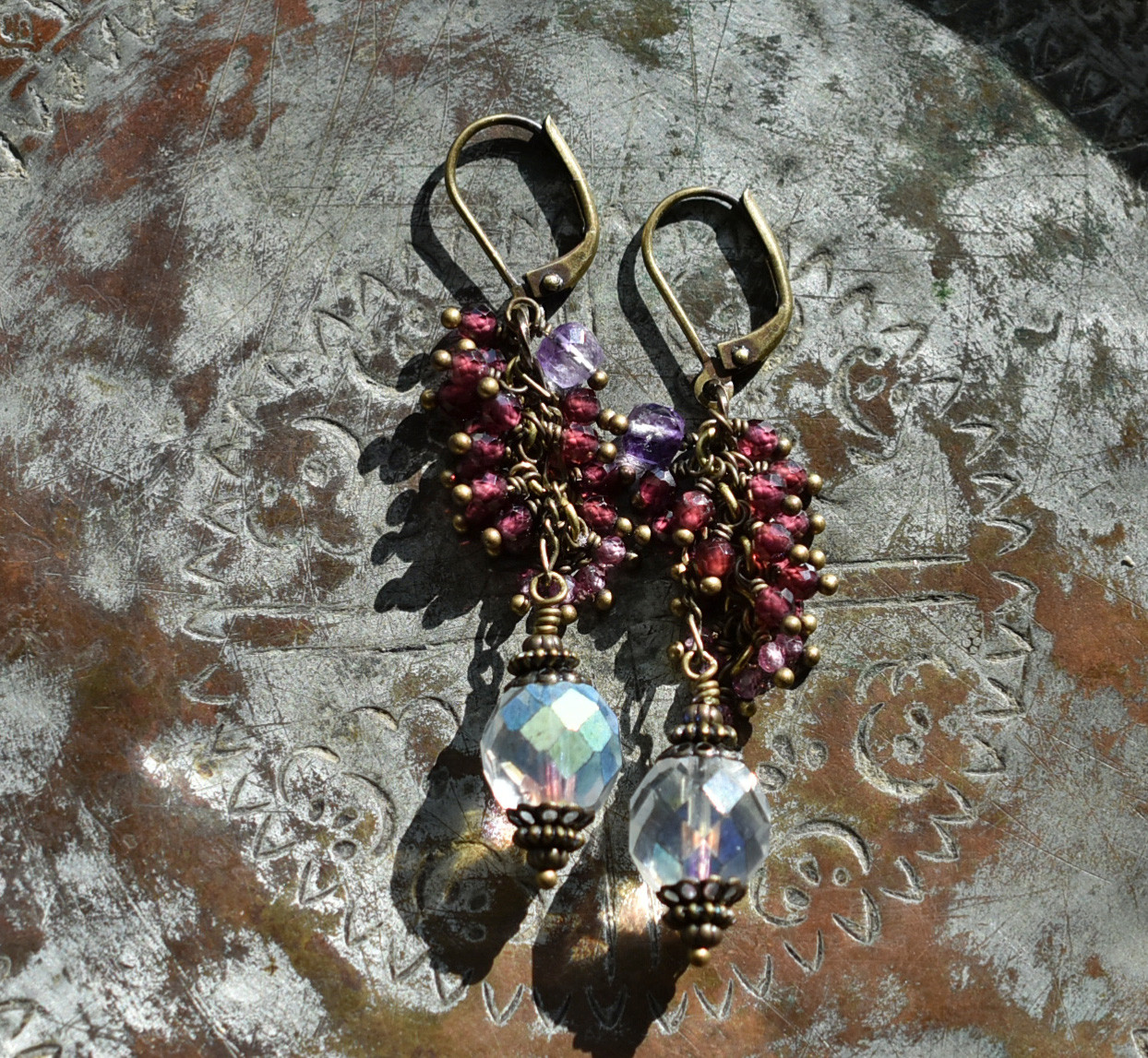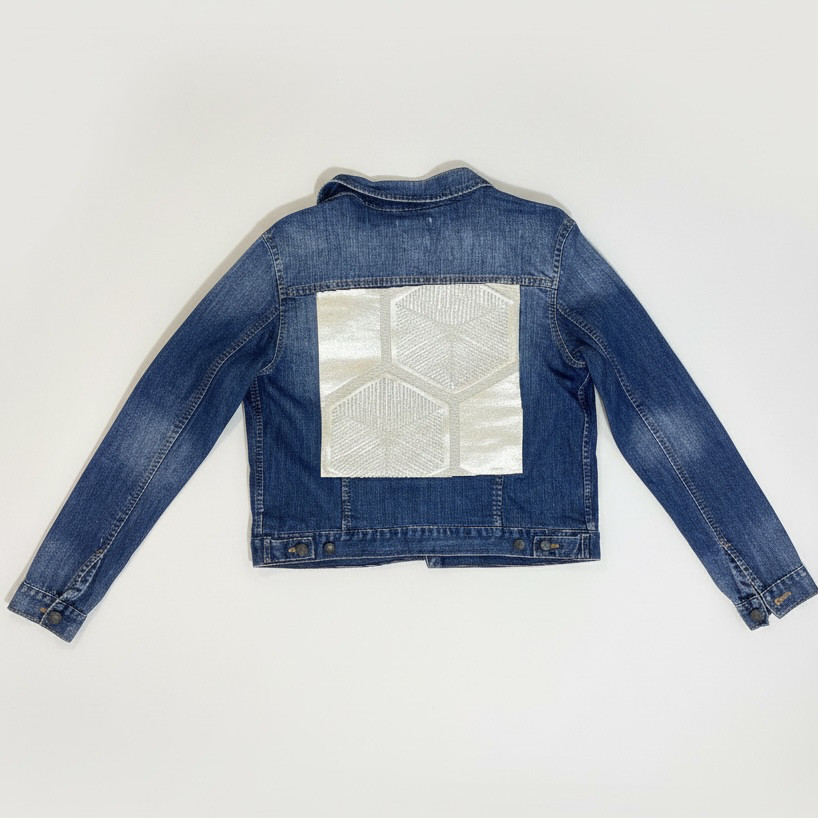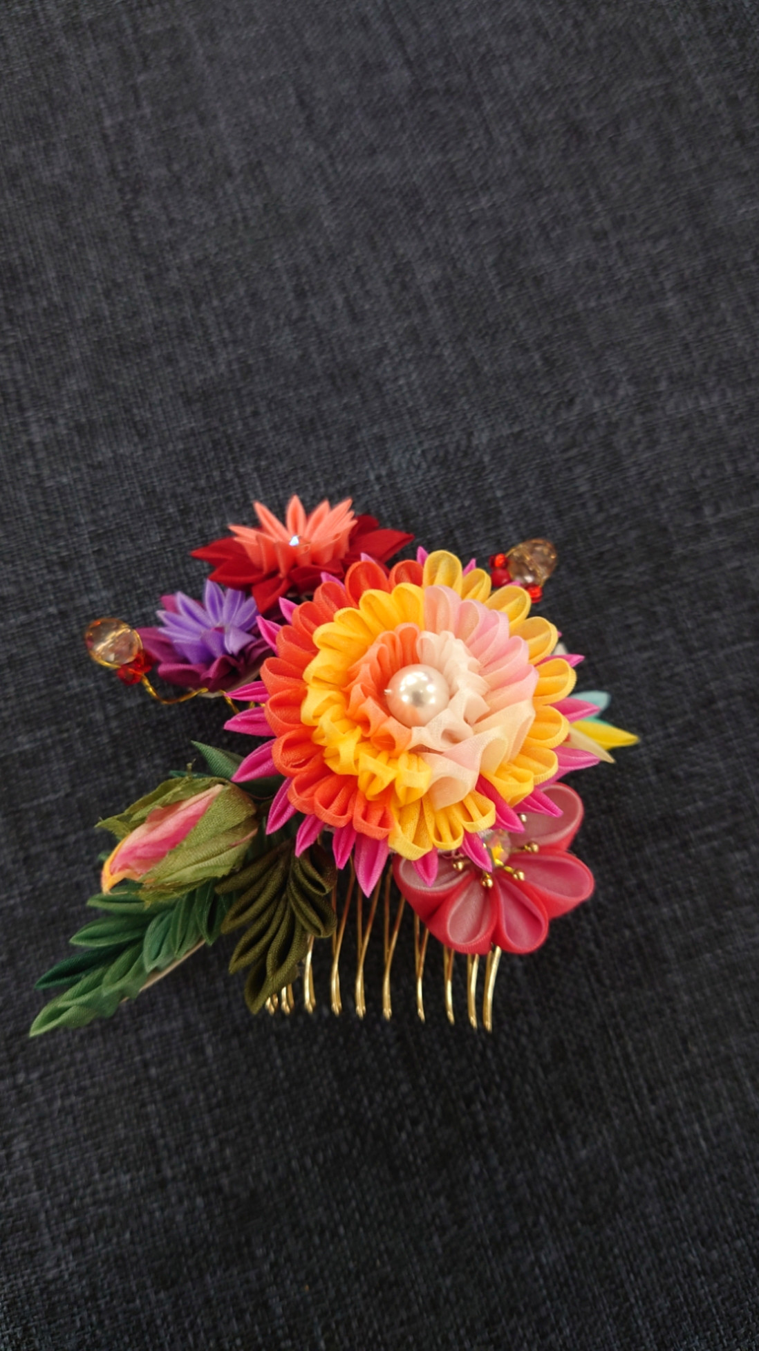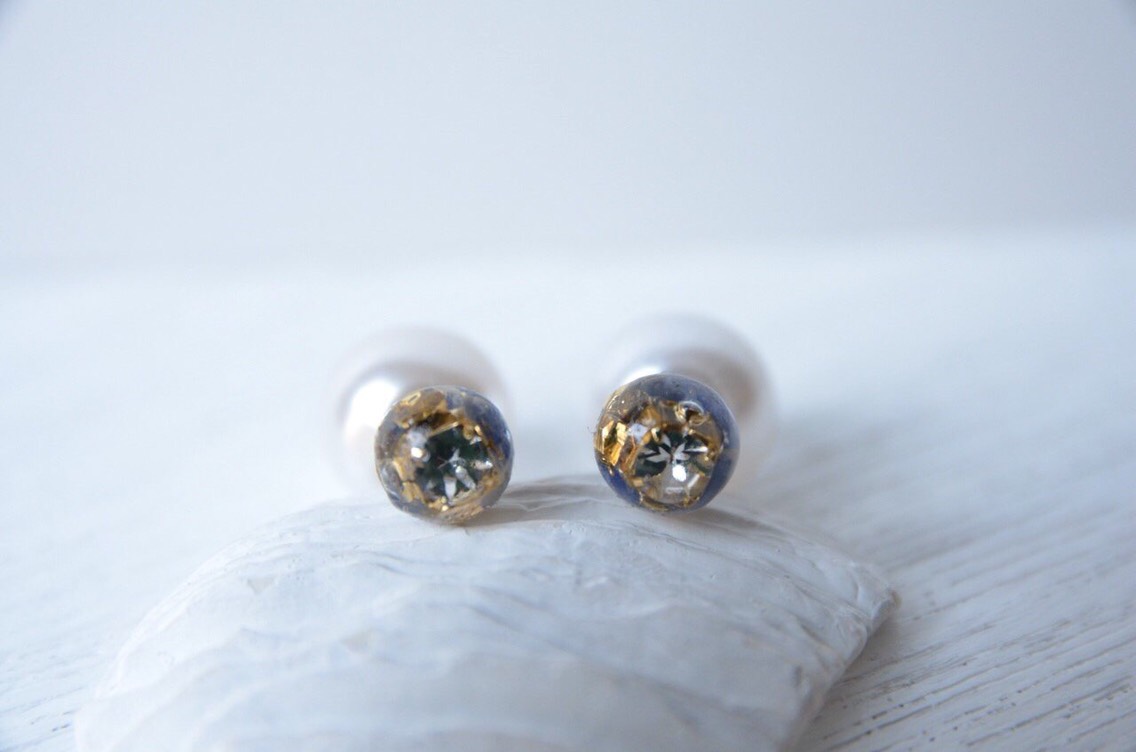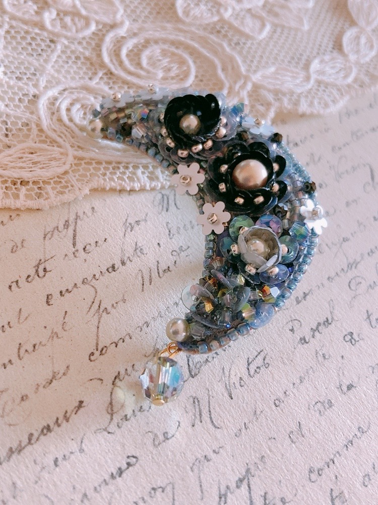 背面はサテンリボンとパールビーズ、キラキラと輝くオーロラのビジューを縫い付けました。