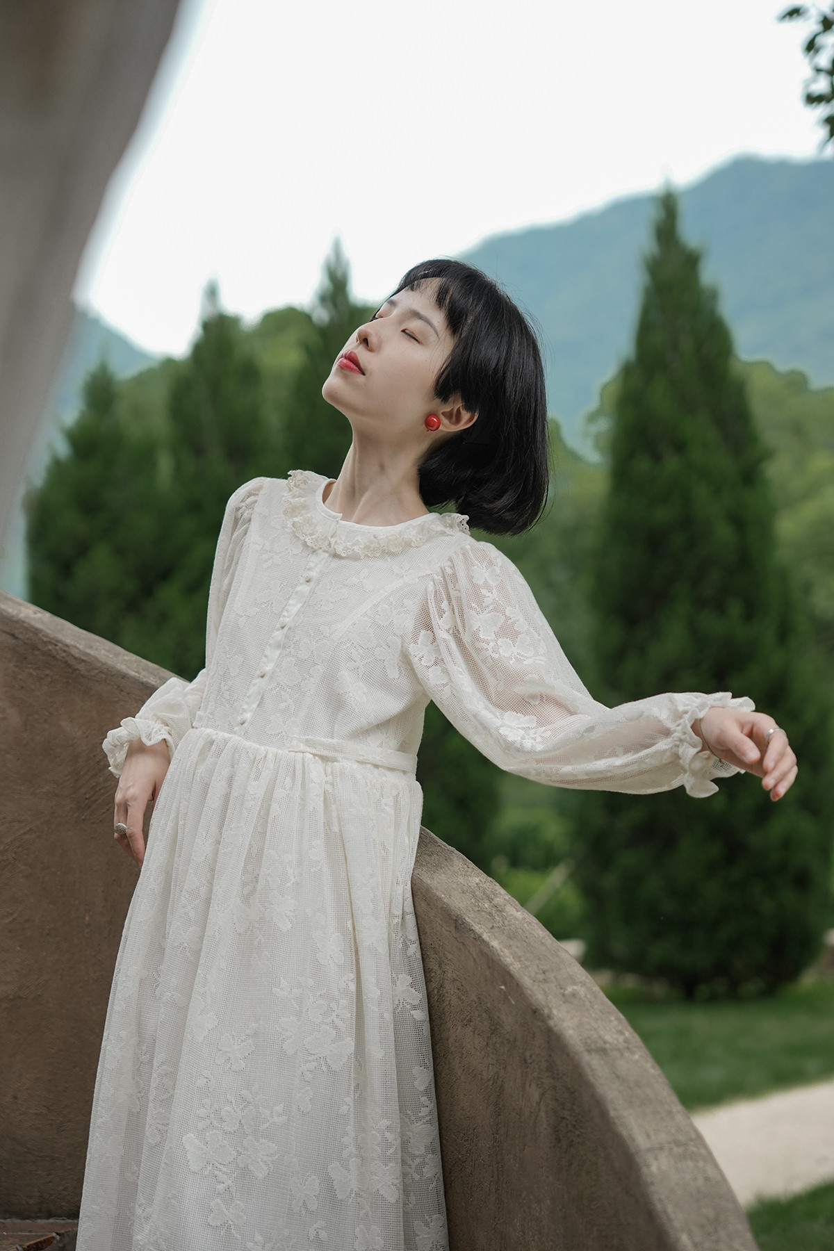 ファスナーの両側には柔らかいレースをあしらい、ガーリーに仕上げました。
