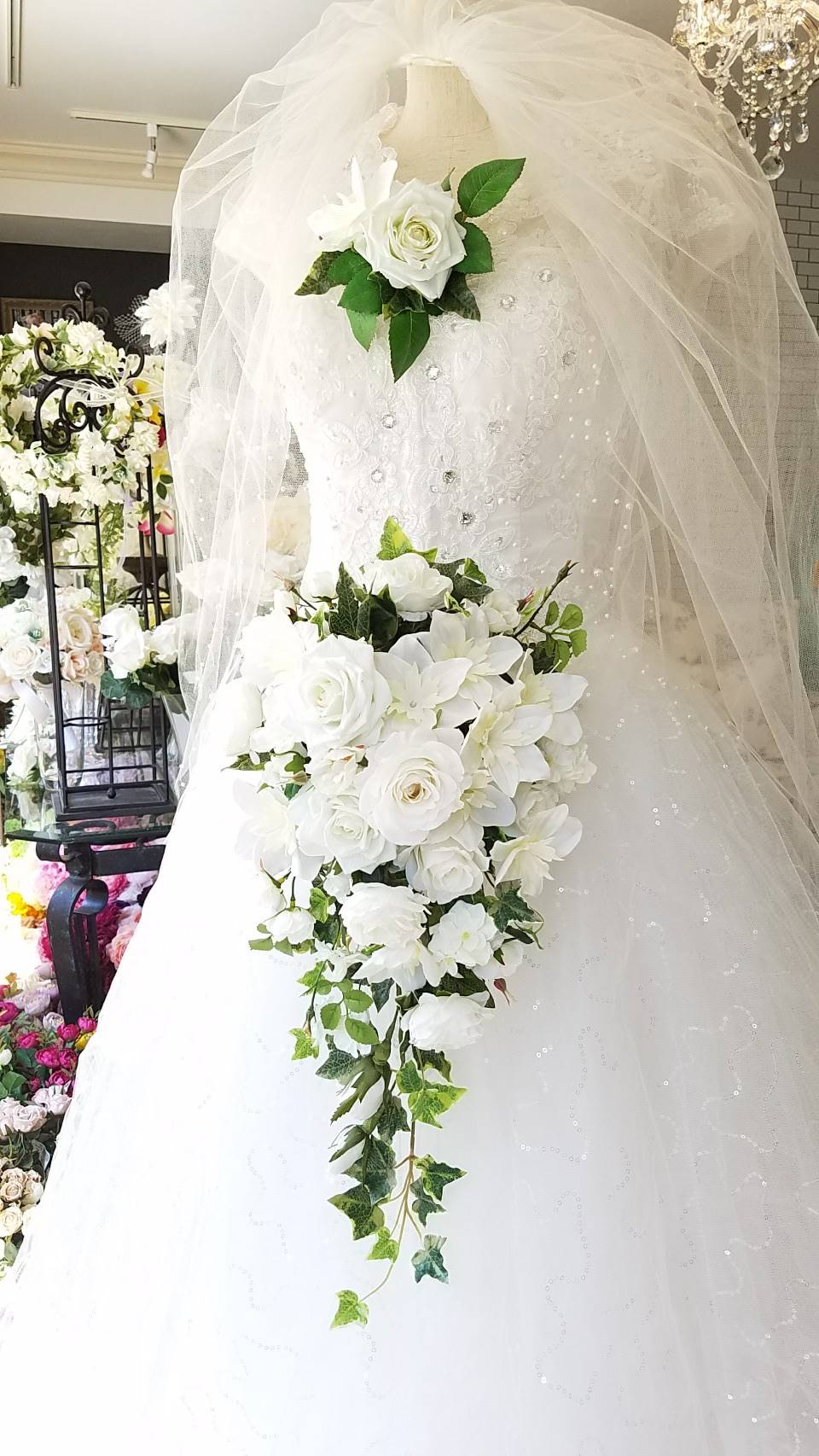 花柄チュール生地を使ってドレスのようなデザインに仕上げました。