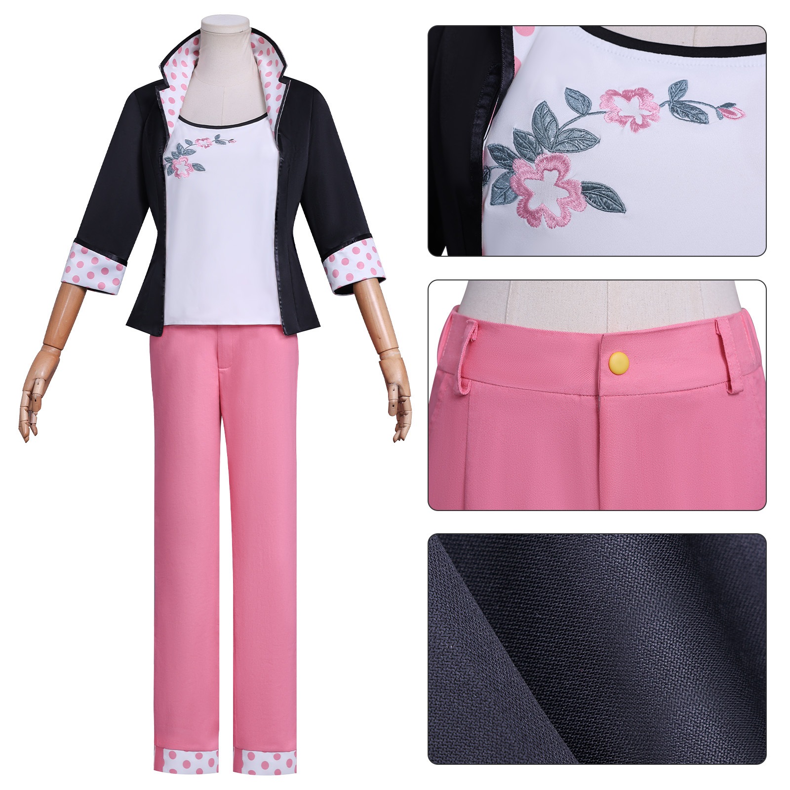 内生地はピンク色の織りドット柄、コットンポリエステル生地です。